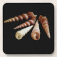 Fotografía de un grupo de conchas de Turitellas sobre un fondo negro.