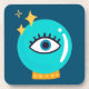 Extraño diseño lindo de una bola azul turquesa de cristal con un ojo. Tema mágico de la nueva era psíquica.