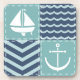Un tejido inspirado en las plazas turquesas tormentosas, adornado con un velero y un ancla blancos, y cuadrados azul marino profundos, acentuados por cantos y olas azul claro, se acentúa con puntas blancas para crear un ambiente náutico clásico.