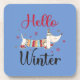 Un lindo ilustracion de patinaje sobre hielo y las palabras: Hola invierno.