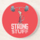 A funny meerkat weightlifter on a sandstone coaster. Use "Personalize this template" to change the "STRONG STUFF" text and make a unique, customized gift. A matching coaster for your whiskey glass, featuring a cute cartoon of a skinny meerkat in big shorts, smiling as he effortlessly lifts a huge barbell with one finger. For fans of booze, weightlifting, meerkats and/or working out.