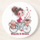 Protect your surfaces with style! This high-quality coaster features a whimsical watercolor illustration of a cute girl enjoying her bike ride with coffee and hearts. A perfect small gift for coffee enthusiasts, cyclists, or anyone who loves charming home accessories.