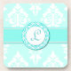 Prácticos de costa bonitos del monograma, con un aquamarine ligero y un fondo blanco del damasco. Una raya intrépida del aquamarine corre a través del centro, con un disco redondo decorativo, en el centro, para un monograma de una letra. Personalice la inicial para adaptarse a sus necesidades. Gran idea para un regalo.