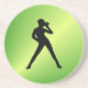 Hermoso fondo verde con una bailarina que se inclina la gorra. Un bailarín de zapato suave.