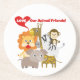 ¡Un león, una jirafa, un mono, una cebra, y un elefante con un corazón y un texto rojos que lee amor nuestros amigos animales en las camisetas, los monos, los baberos, las mantas, las almohadas, los relojes de pared, las tarjetas, los llaveros, los mousepads, las tazas, los bolsos, los pegatinas, y más!