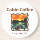 Un ilustracion de madera inspirado en poner el sol sobre el muelle y el lago, con el título de Café de la cabina sobre él, hace que la bebida sea perfecta para la cabaña o para salir en el barco.