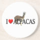 Se muestra una alpaca marrón y blanca con el texto "I heart alpacas"