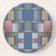 "Denim Patchwork" Un arreglo simétrico de rectángulos texturados, tipo tela, en tonos mudos de azul, verde, rosa y beige. La disposición se asemeja a un tejido o mosaico de mosaico de mosaico y cada bloque está meticulosamente alineado para crear una estructura equilibrada de forma similar a la de la cuadrícula.