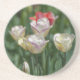 Foto de hermosas flores blandas de tulipán morado y blanco. Procesado para que parezca una pintura al óleo. Este diseño también se aplica a muchos otros productos de Zazzle.