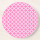 Posavasos De Arenisca Patrón blanco sobre el quatrefoil rosa caliente