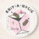 ¿Es usted un Punto-UNo-Holic? Quién puede resistir este diseño que hace punto de la diversión con una torsión. Este diseño que hace punto único es perfecto para cualquier persona que ame hacer punto. Atracción de un vidrio retro de martini con el hilado para las aceitunas. El texto dice KNIT-A-HOLIC, con una aceituna en el "o". Personalícelo con su propio texto de encargo. ¡Original de PinkInkArt!