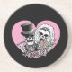 Los cráneos de novias y novios están vestidos con el mejor de sus bodas con el texto JUST MARRIED.