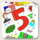 Un diseño dedicado al número 5. Ode to Five se inspira en los dibujos de estudiantes de secundaria y secundaria que hacen garabatos en sus cuadernos y carpetas con lápiz y marcador - ¡y temática alrededor del número 5! Un gran 5, un billete de 5 dólares, un níquel, el 5° de Beethoven, una mano, las palabras francesa y española de 5, una mano de póquer de 5 tarjetas, e incluso James Madison -el quinto presidente de los Estados Unidos- decoran esta montaña rusa única. ¡Así que celebren el número 5 con este diseño espectacularmente divertido! El diseño se esbozó a mano en lápiz y pluma y se coloreó digitalmente con un rotulador. Diseño original de Sunny. Copyright 2012