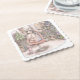 POSAVASOS DE PAPEL さなにくじ 本棚のある部屋、赤い椅子の上に座って身体を丸める女性のイラスト