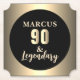 90 & Legendary Gold 90th Birthday Party Coaster. Celebrate Marcus's incredible 90th birthday with this elegant black and gold '90 & Legendary' design. Featuring a sophisticated metallic gold border and typography on a black background. It's the perfect way to honor a truly legendary individual reaching this significant milestone. Customize with any name.