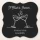 A cute personalized wedding cocktails coaster in black and white. Minimalistic cocktail glasses clinking line art with the quote, "A Toast to Forever." Add bride and groom's names and wedding date in the personalize area.