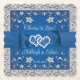 Esta montaña rusa de papel personalizado coordina con la colección boda de corazones de amor azul y gris real y tiene un borde de Relieve metalizado plateado simulado alrededor del exterior, borde de vieira con un fondo azul real para los detalles de frases grises con los que se puede personalizar. Hay una cinta azul real, un arco y una imagen unida de corazones que recorre todo el ancho de la montaña rusa del papel y arcos de flores de plata envueltos alrededor de la frase que dice, "¡Salud para Amar!" encima de la cinta, con los nombres de la pareja y la fecha boda debajo de la cinta.