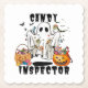 Inspector Candy. Prepárense para el truco o vístete para Halloween. Esta imagen es un diseño con temática de Halloween que presenta a un fantasma en el centro, con las palabras "INSPECTOR DE VELAS" escritas en negrita a continuación. El fantasma está representado con una expresión amigable y caricaturista y está rodeado de varios elementos temáticos relacionados con los dulces, como copas, latas de dulces y maíz dulce. A ambos lados del fantasma hay dos farolillos, cada uno con una expresión diferente. Las lámparas son coloridas y aportan un ambiente festivo y alegre a la decoración. El fondo es transparente. En general, la imagen es una representación caprichosa y alegre de la festividad de Halloween, con un enfoque en los dulces dulces que a menudo están asociados con la ocasión.