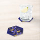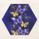 Composición de lujosas mariposas de zafiro y joyas de oro sobre fondo de textura azul.