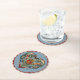 Esta montaña rusa de papel presenta un diseño noruego Rosemaling Folk Art Heart sobre un fondo azul coordinado con un borde rojo.