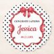 Elegant red bow and ribbon with polka dot background, baby shower paper coasters, change the text to anything you want when ordering