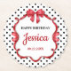 Elegant red bow and ribbon with polka dot background, birthday paper coasters, change the text to anything you want when ordering
