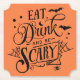 Simple cute drink coasters that says “Eat drink and be scary” orange and black.