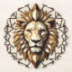 Un león elegante y simétrico con un enfoque geométrico para enfatizar su estatura real. Utilice líneas limpias y formas equilibradas para transmitir la presencia y elegancia dominantes del león. "Imagen original generada por Meta AI. La IA generó obras de arte. Con licencia CC BY-SA 4.0.
