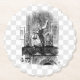 Sistema de 6 prácticos de costa disponibles horneados a la crema y con pan rallado redondos del tablero de la pulpa con un vintage con la imagen del espejo de Alicia que se arrodilla en la chimenea de la chimenea, mirando en el espejo en un tablero de damas gris y blanco. Vea el práctico de costa a juego de la piedra arenisca y la servilleta de papel del cóctel. Vea la colección entera del práctico de costa del país de las maravillas en la sección de los prácticos de costa de FOOD/BEV el |.