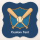 Icono de béisbol con dos murciélagos y una pelota sobre un escudo azul. Color de fondo personalizado. Texto personalizado.