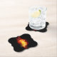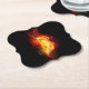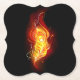 Una brillante pluma de pavo real hecha de fuego y llama sobre fondo negro.