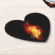 Una brillante pluma de pavo real hecha de fuego y llama sobre fondo negro.