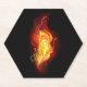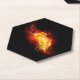 Una brillante pluma de pavo real hecha de fuego y llama sobre fondo negro.