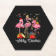 Posavasos De Papel Feliz Navidad Tres Flamingo Con Santa Hat