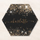 Posavasos De Papel Guión de nombre de polvo de brillo dorado negro