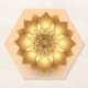 kartonnen onderzetter 6kantig. Met een gouden lotusbloem op oud roze ondergrond en het logo van Vishnuh