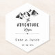 Dé a su invitado un hermoso regalo rústico con ilustracion de montaña y letra cuidadosamente escogida para ese aspecto especial con el guión personalizado "La aventura empieza" y sus monogramas y fecha