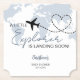 Este diseño presenta un tema aventurero: la ducha de bebé "A Little Explorer is Landing Pronto" con un mapa del mundo de las acuarelas azules y un lindo avión en la ruta. Minimalista y moderno tema de la ducha para bebés.