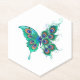 Posavasos De Papel Mariposa con plumas de pavo real verde