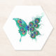 Posavasos De Papel Mariposa con plumas de pavo real verde