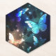 Fabuloso, brillante, azul y amarillo, mariposa nocturna sobre fondo oscuro.