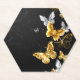 Oro, joyas y mariposas blancas sobre fondo negro. Mariposa dorada.