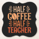 El divertido diseño de café para el profesor que ama su café, incluye un grano de café y un texto que lee Half Coffee Half Teacher! Café de profesores diseña tazas, pegatinas, bolsas, almohadas, camisetas, y más!