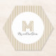 Modern Minimal Gold Stripes Monogram Paper Coaster you can customize with your monogram and name. Available in several shapes.