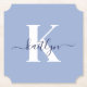 Estos aulas de papel en forma de boleto azul claro, simples y elegantes, con tu primer nombre en una letra de guión a la moda en azul marino, tipeadas sobre tu primera línea en un moderno tipo de letra de cierre en blanco, son perfectos para mantener tus mesas y mostradores libres de anillos de agua. Absorben gotitas para que no tengas que preocuparte cuando estés entretenido o disfrutando de una bebida. Son elegantes y de diseño, aunque muy clásicos.