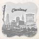 Icónica vista de Cleveland, Ohio desde el río, presentada en una elegante montaña de bebidas blancas y negras. ¡Una manera única de mostrar una ciudad única!