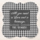 Trendy houndstooth black & white pattern featured on these bracket shape coasters, and a black denim print frame with quote in script and name in a stylish decorative font. Easily edit name and quote to make it yours using the Template provided. Paper coasters are 4"x4", made of 50 pt. pulp board and printed in vibrant full color. Sold as sets of 6. This design fits several other shapes available. See "About This Product" at side for more information.
