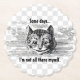 Sistema de 6 prácticos de costa disponibles horneados a la crema y con pan rallado redondos del tablero de la pulpa con un vintage Alicia en la imagen del país de las maravillas de la cabeza del gato de desaparición de Cheshire en un tablero de damas gris y el texto "algunos días no soy todo allí mismo." Vea el práctico de costa a juego de la piedra arenisca, el práctico de costa plástico y las servilletas. Vea la colección entera del práctico de costa del país de las maravillas en la sección de los prácticos de costa de FOOD/BEV el |.