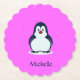 Posavasos De Papel Nombre personalizado pingüino lindo en rosa