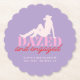 Posavasos de papel para fiesta Morado Aturdida y Comprometida. Este diseño de vaquera moderna presenta la frase "Aturdida y Comprometida" en una fuente elegante, con mucho espacio para personalizar con el nombre del evento y la fecha o ubicación. Una forma perfecta de añadir diversión y estilo.